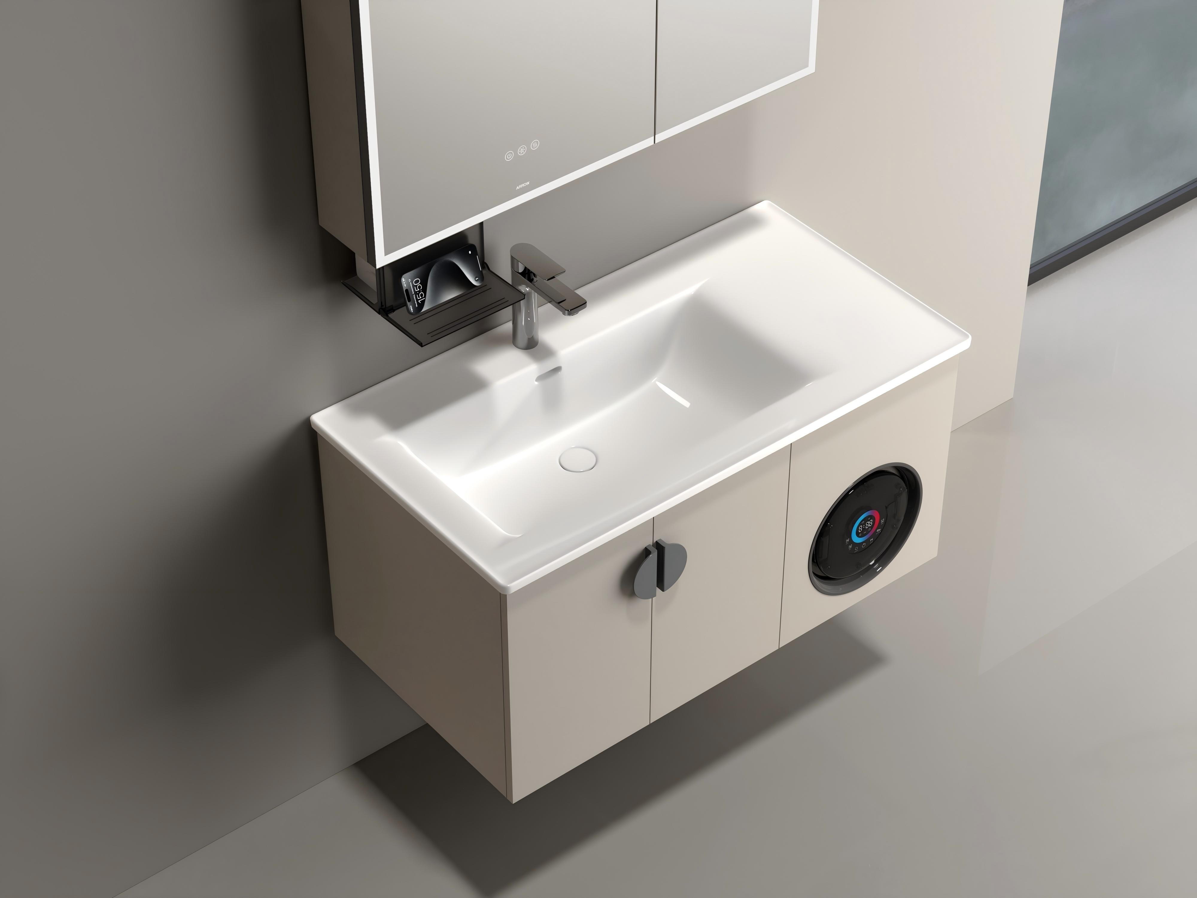 缦珂系列创新性地将滚筒洗烘一体机高效整合于浴室柜中,巧妙化解小户型空间难题。告别传统洗衣机单独摆放的占地困扰,在满足洗漱、收纳核心需求的同时,轻松完成贴身衣物的清洗与烘干。